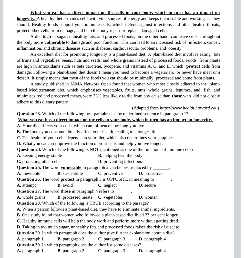 Giải quyết:What you eat has a direct impact on the cells in your body ...