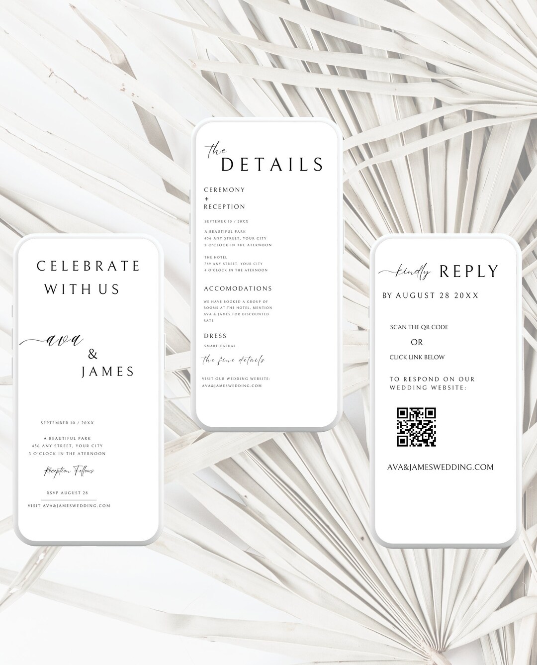 E Template Online Wedding Invitation Bundle Evite Invitation RSVP QR ...