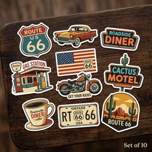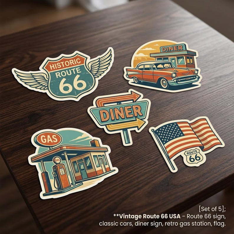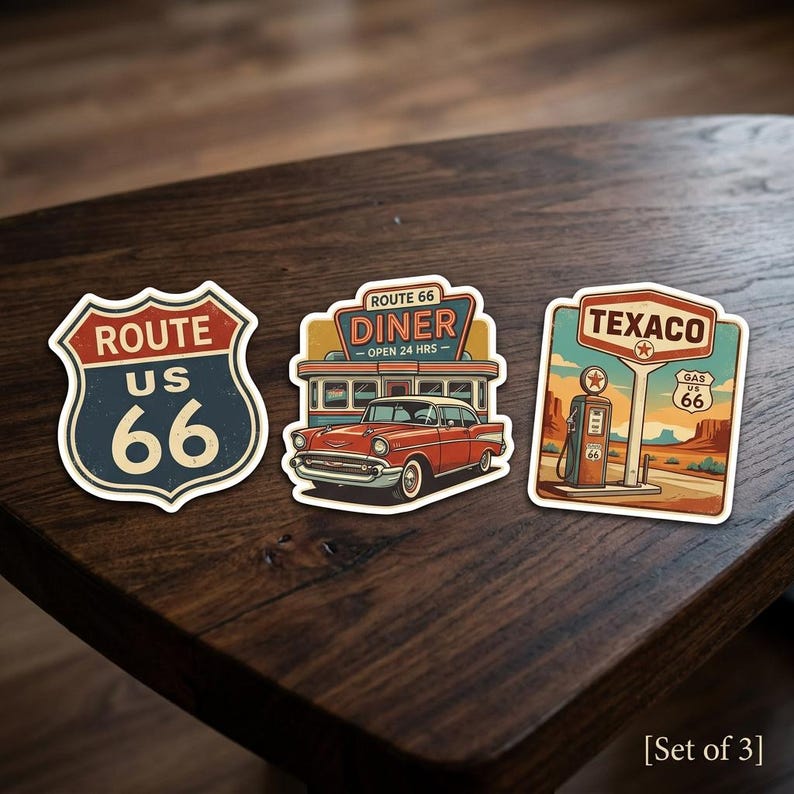 Vintage Route 66 Sticker Set – Retro Diner, Cars, Gas Station Signs - Etsy