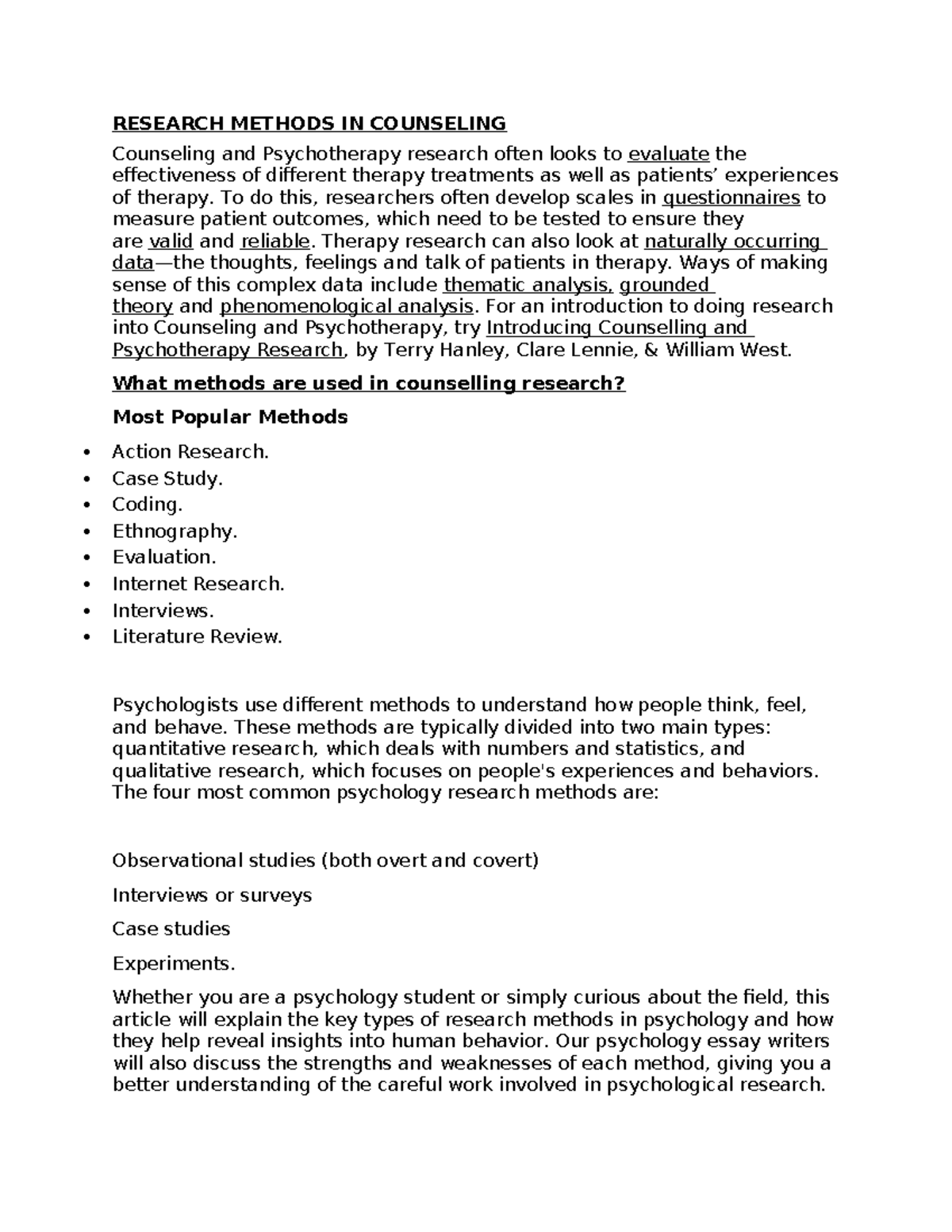 Research Methods in Counseling: Understanding Therapy Effectiveness ...