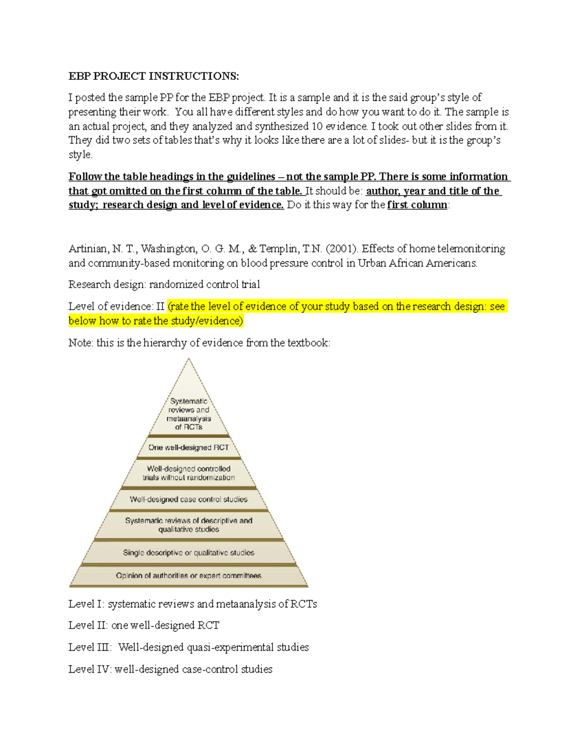 EBP Project Instructions - EBP PROJECT INSTRUCTIONS: I posted the ...
