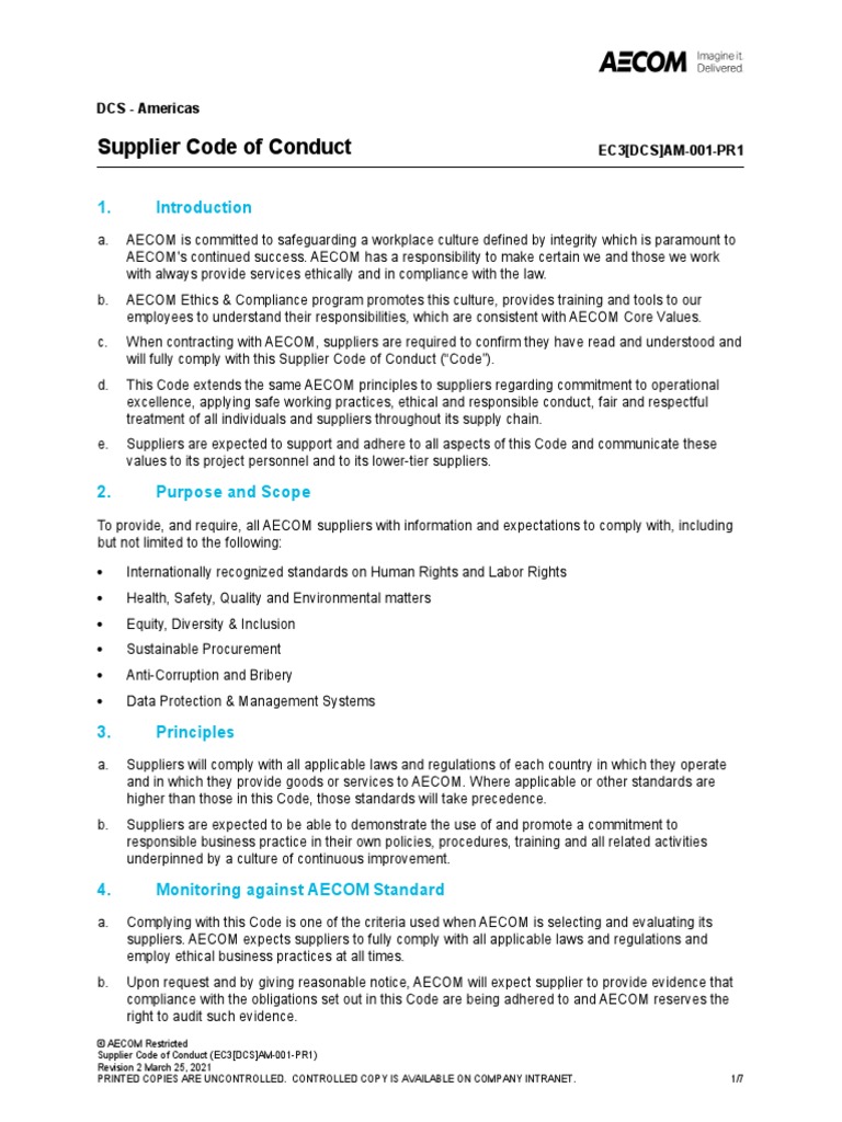 Supplier Code of Conduct EC3 DCS AM 001 PR1 | PDF | Trade Secret ...