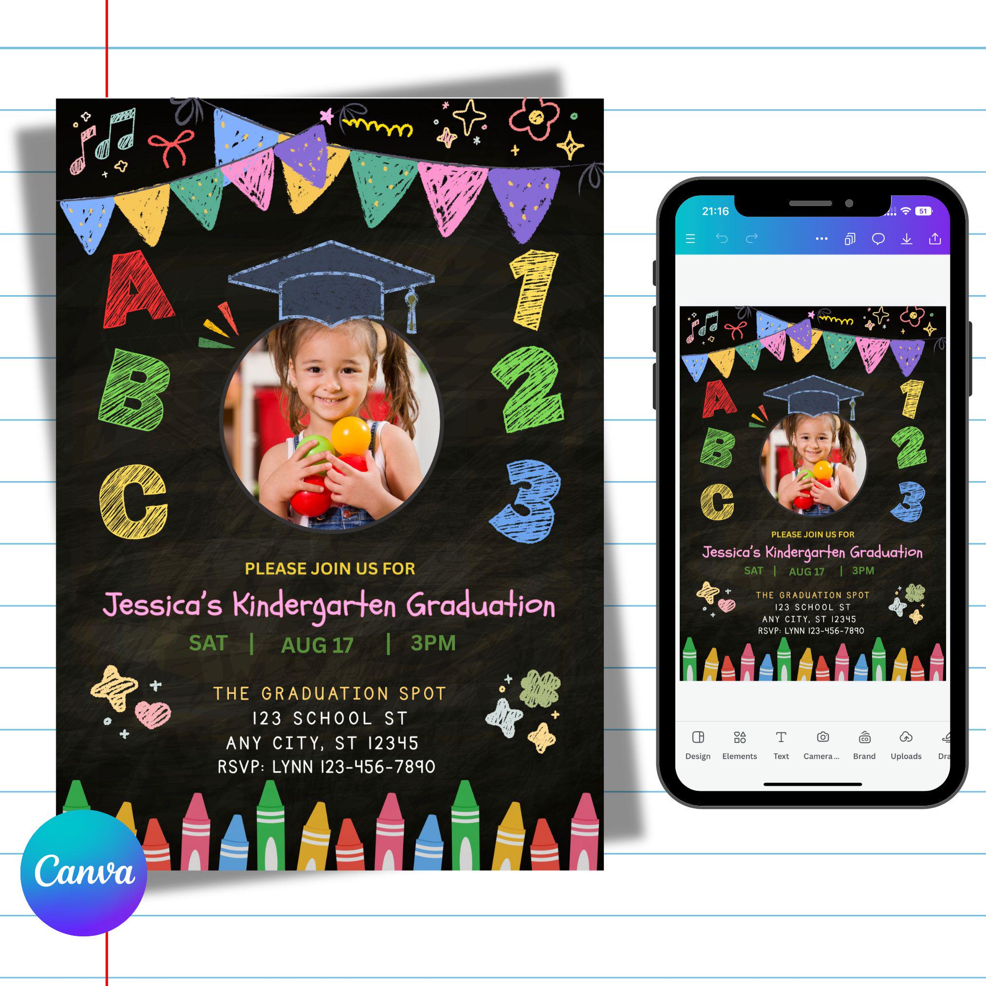 Editable Canva Kindergarten Graduation Invitation, Pre-school ...