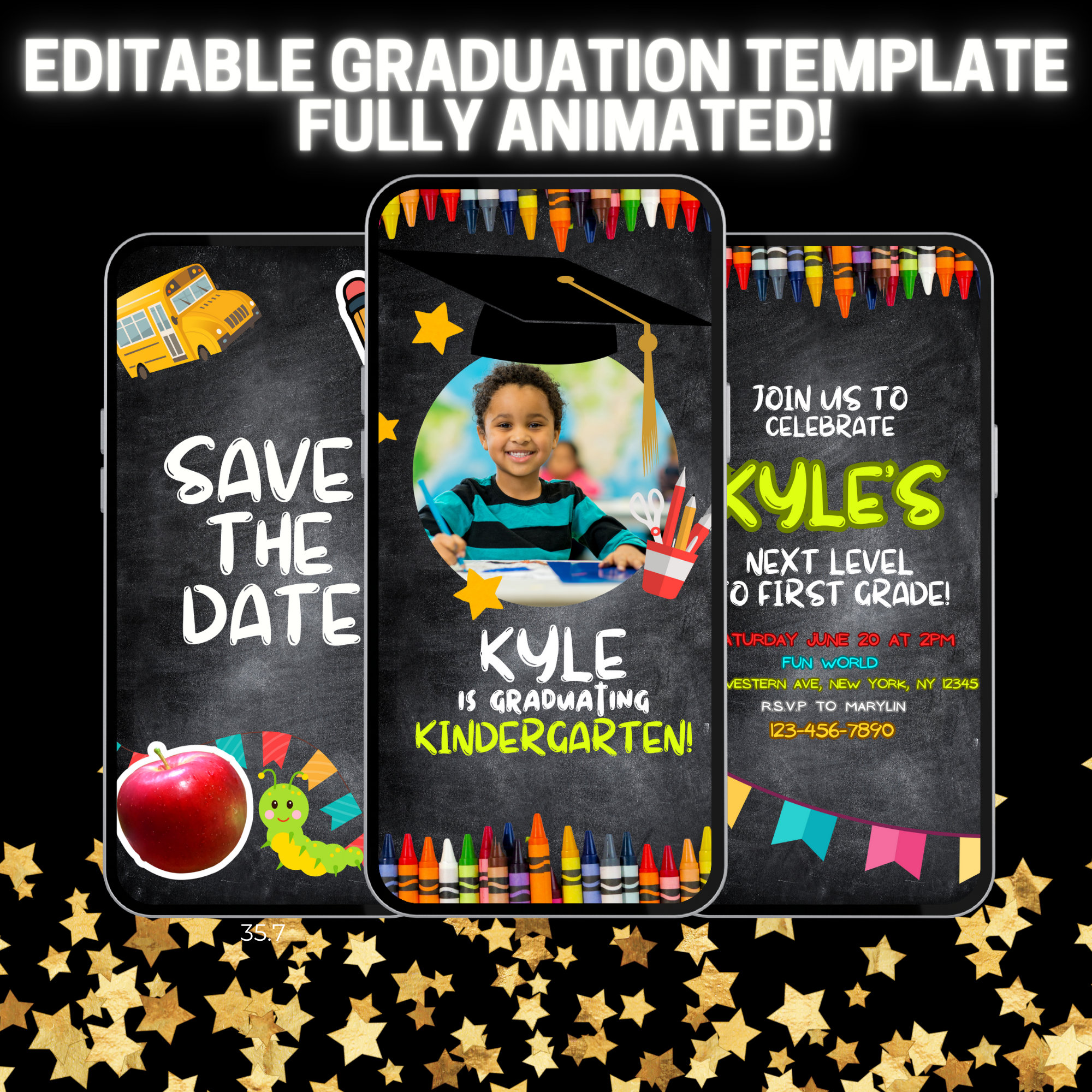 Editable Graduation Invitation Chalkboard Printable Kindergarten ...