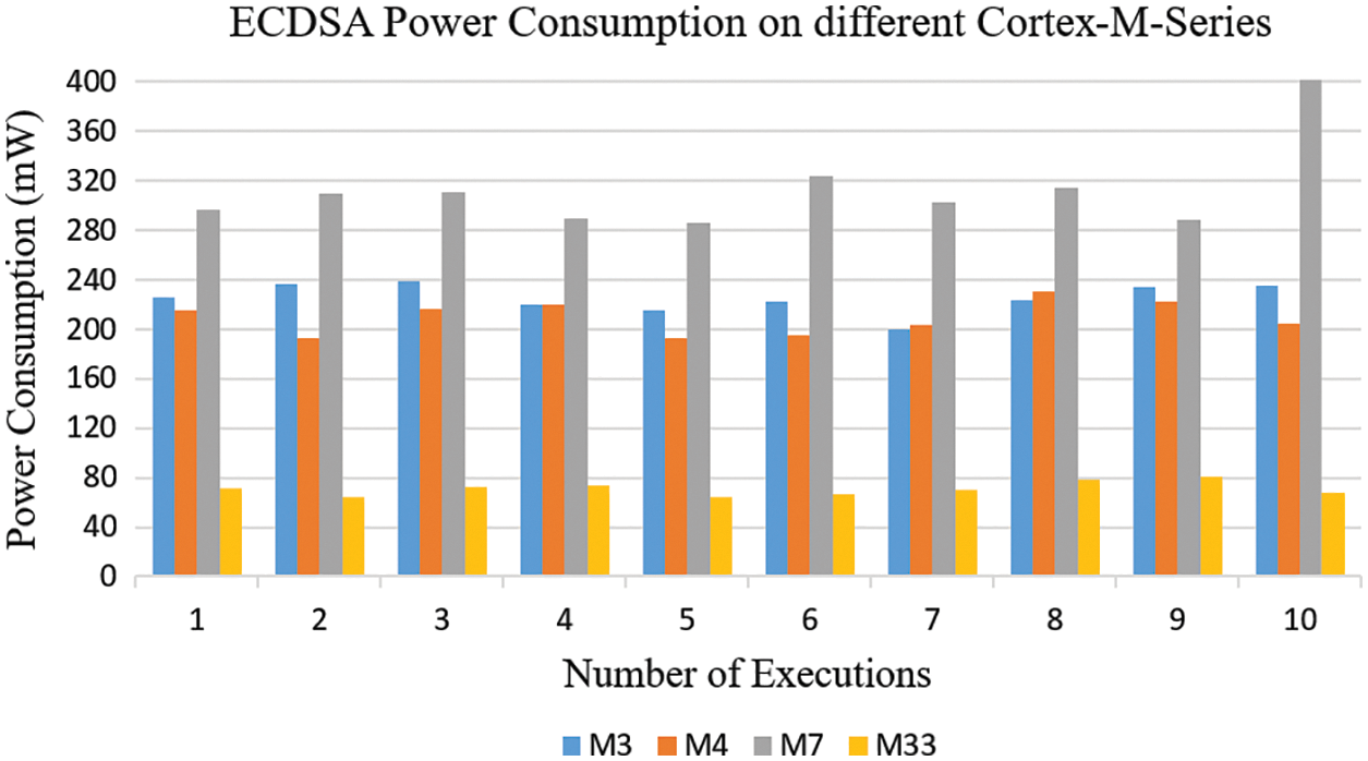 Measurements of the executed ECDSA functions based on the RELIC library ...