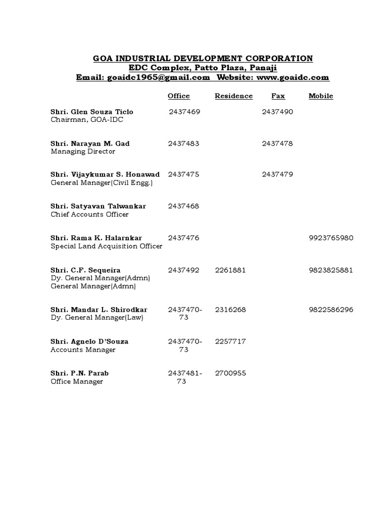 Goa Industrial Development Corporation EDC Complex, Patto Plaza, Panaji ...