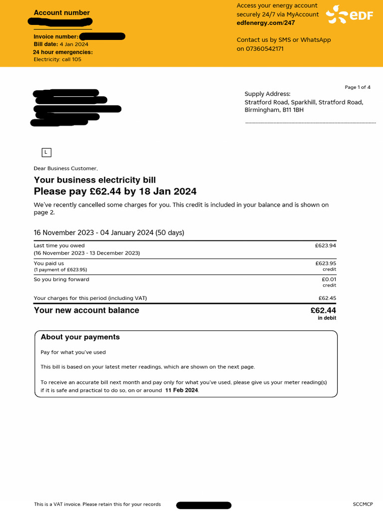 Edf Uk Utility Bill | PDF | Value Added Tax | Invoice