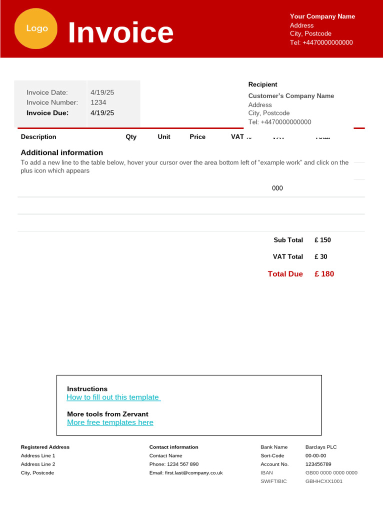 Free Invoice Template | Sole Trader | Ltd Company | VAT Invoice ...