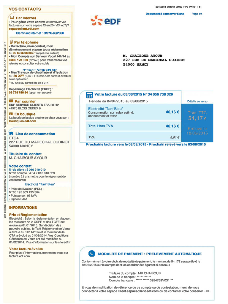 Facture EDF : Détails et Paiement | PDF | Taxe sur la valeur ajoutée ...