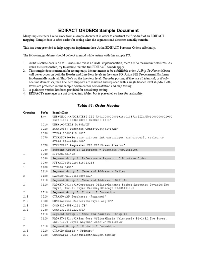 EDIFACT Orders Sample Document | PDF