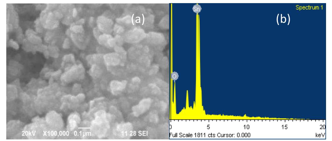 A-b: (a) sem image of pure sno2 and (b) edx spectrum of pure