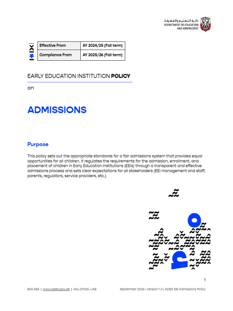 ADEK - EEI - Admissions Policy - EN | PDF | Medical Record | United ...