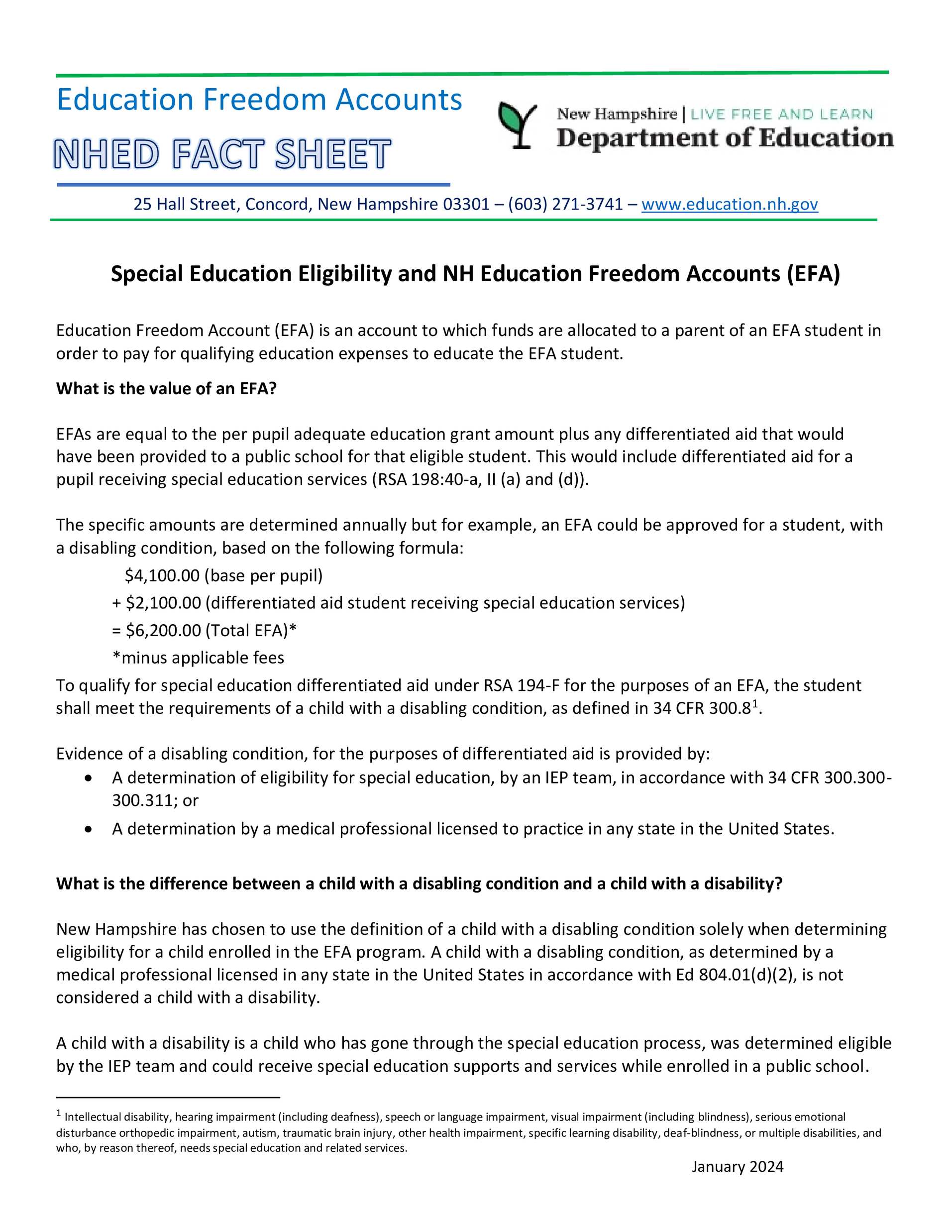 Special Education Eligibility and NH Education Freedom Accounts (EFA ...