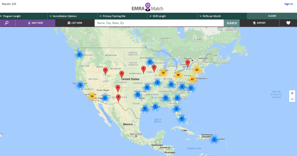 Representative Map of the 65 US Emergency Medicine Residency Programs ...