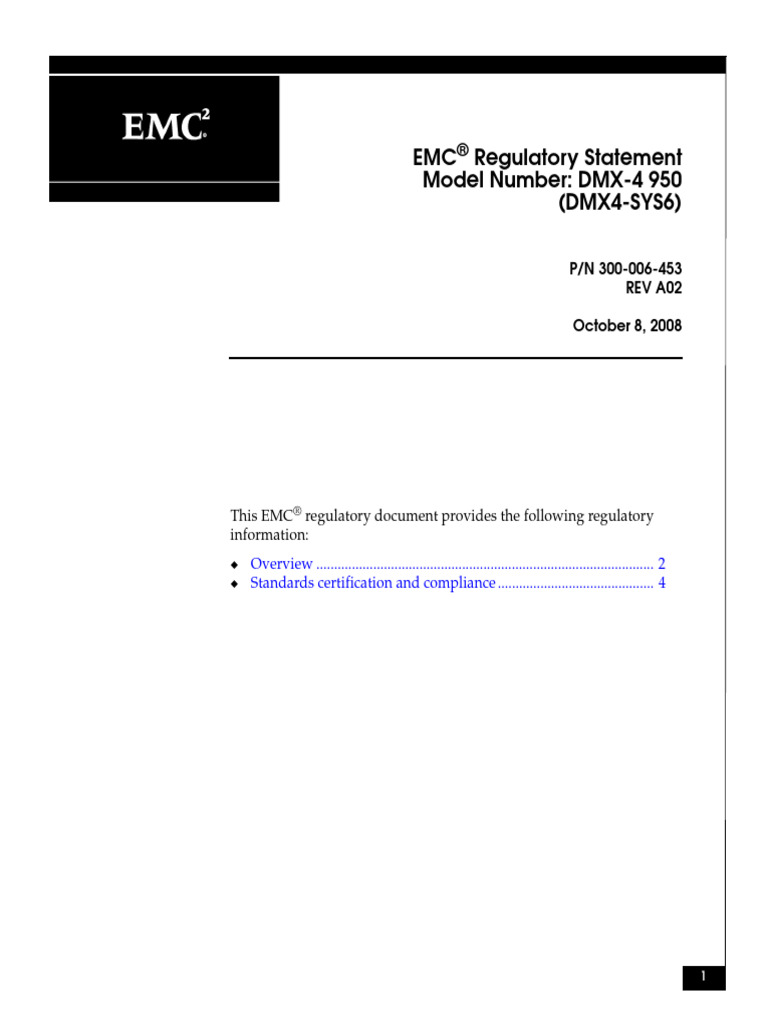 EMC Regulatory Statement Model NumberDMX-4 950 (DMX4-SYS6) | PDF ...