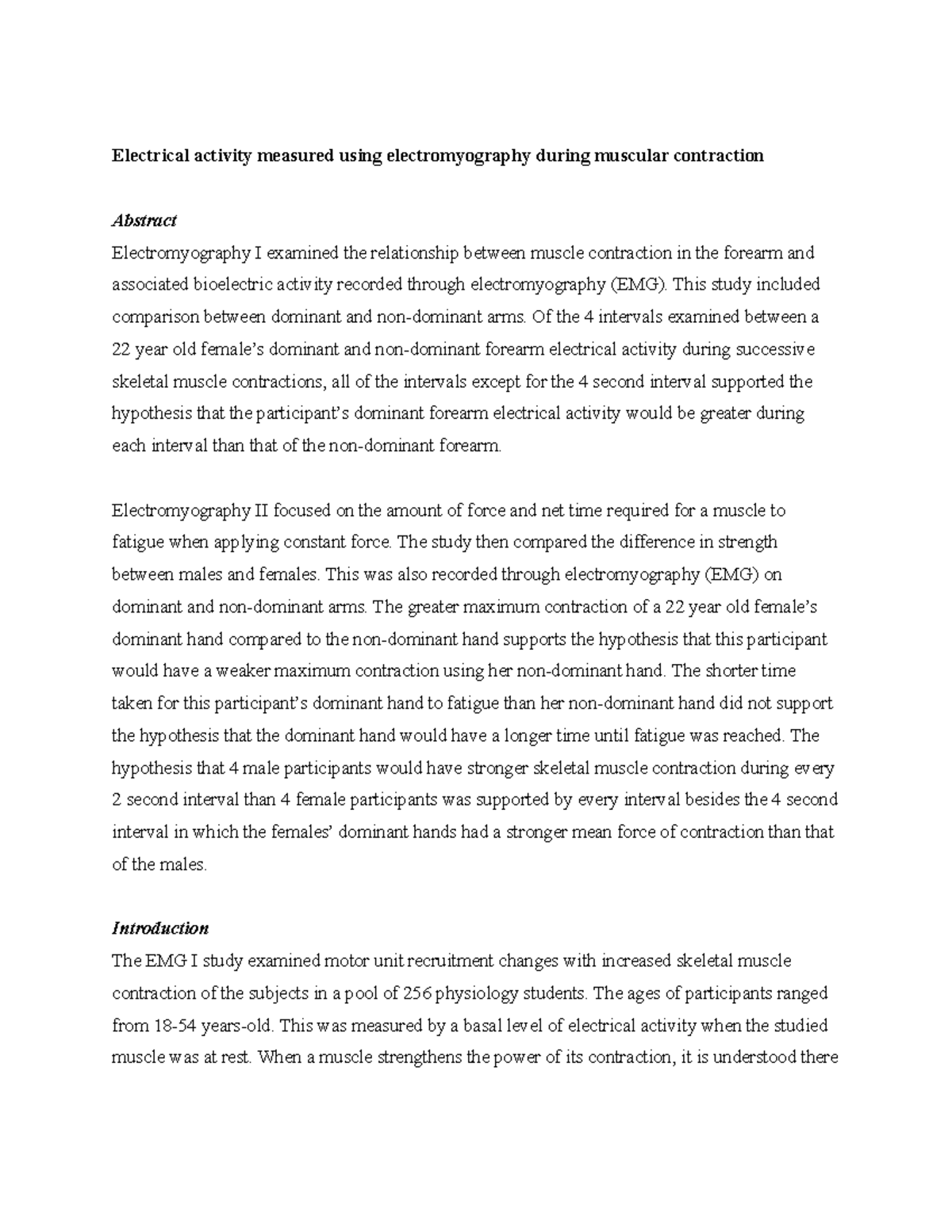 EMG Lab Report Online Form.docx - EMG LAB REPORT II. EMG Measurements ...