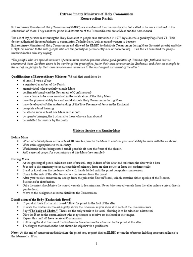 Guidelines for EMHC Training and Service | PDF | Eucharist | Mass (Liturgy)