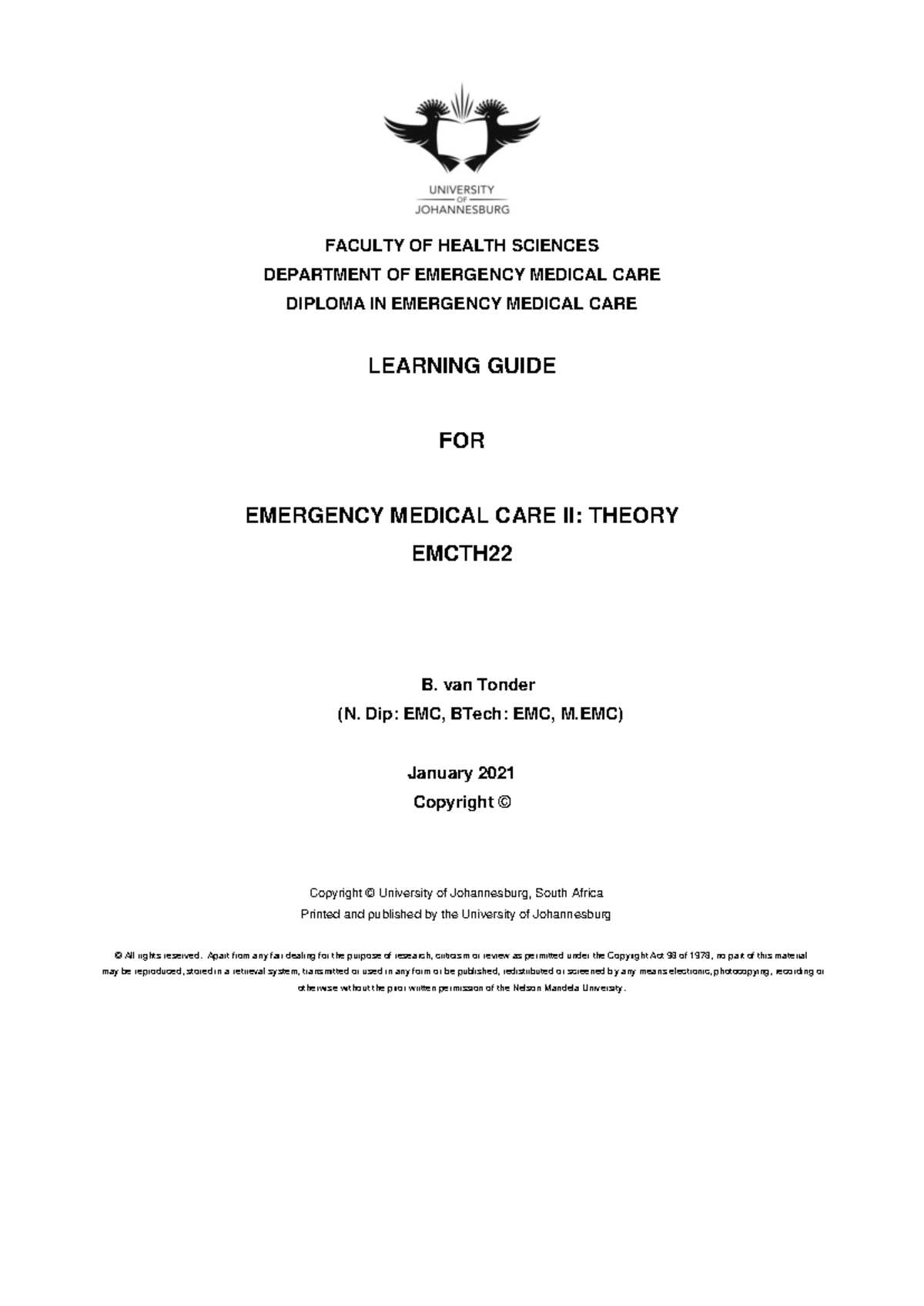 Diploma EMC - Emergency Medical Care II: Theory Learning Guide 2021 ...
