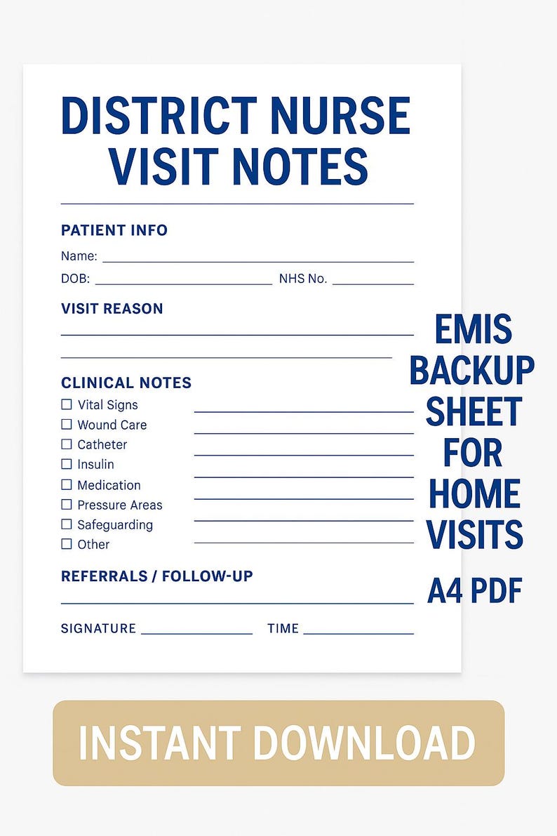 District Nurse Visit Notes Printable: UK Community Nurse EMIS Backup ...