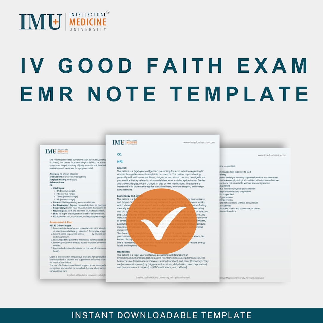 IV Good Faith Exam EMR Note Template – Pre‑iv Therapy Vitals, History ...