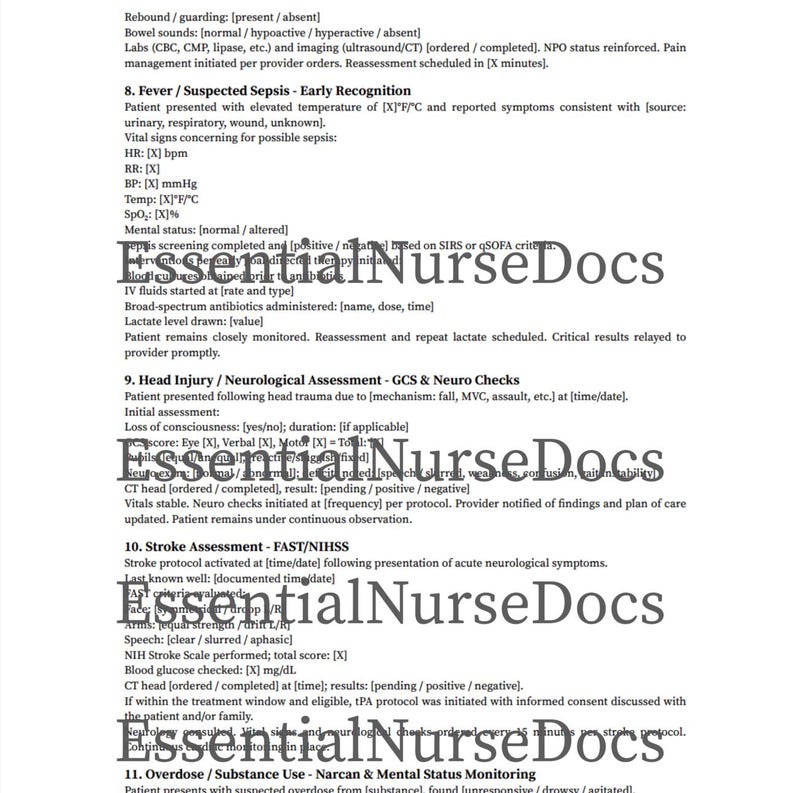 Emergency Department Nursing Templates | Editable Shift Charting & EMR ...