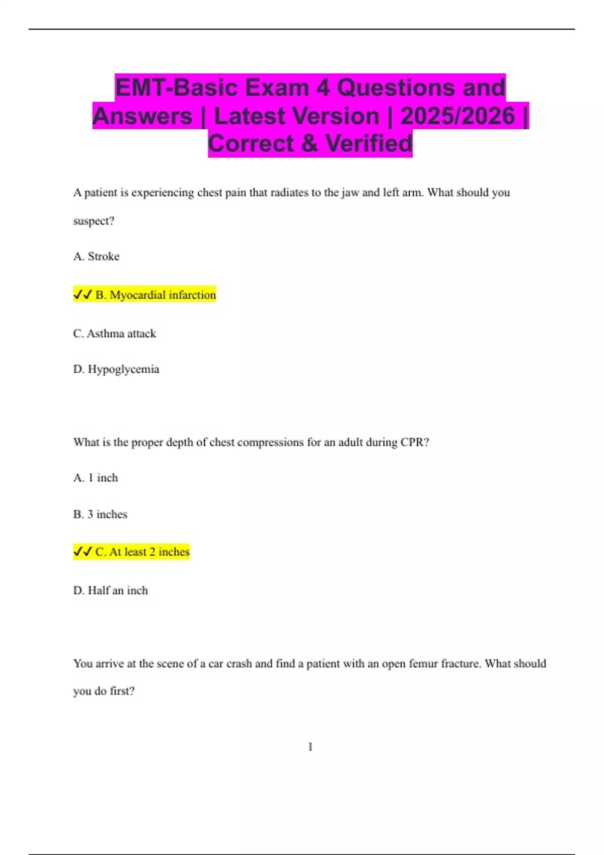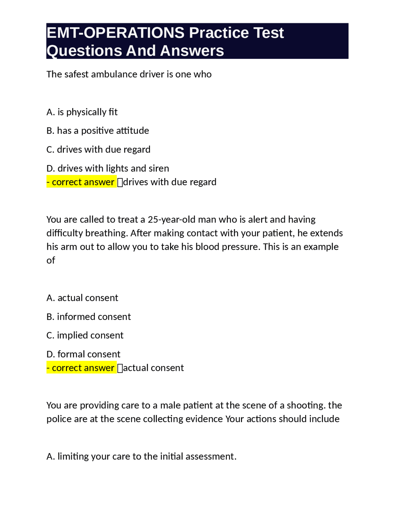 EMT Basic Practice Exam 1, 2, 3, 4, Merged Together With Questions and ...