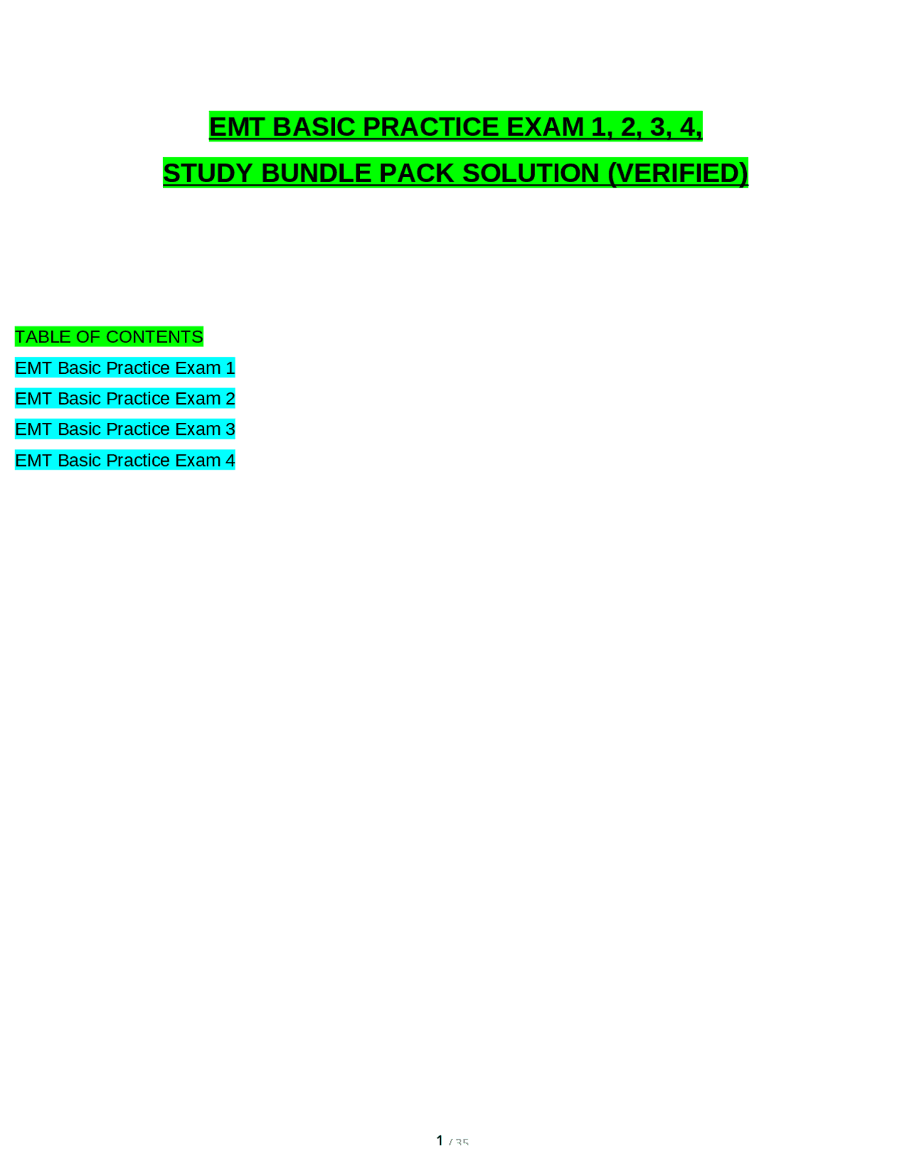 EMT BASIC EXAM 1, 2, 3, 4, & EMT BASIC PRACTICE EXAM 1, 2, 3, 4, Merged ...