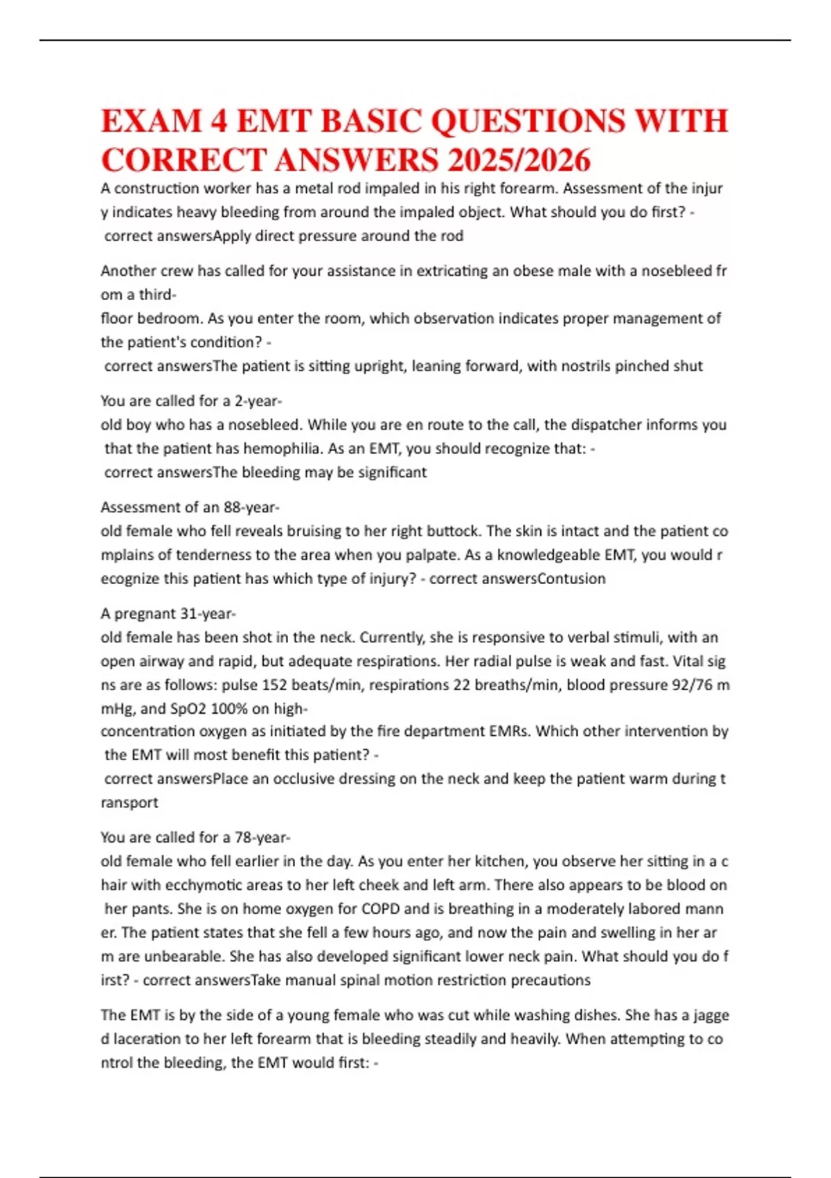 EMT-Basic Exam 4 Questions and Answers | Latest Version | 2025/2026 ...