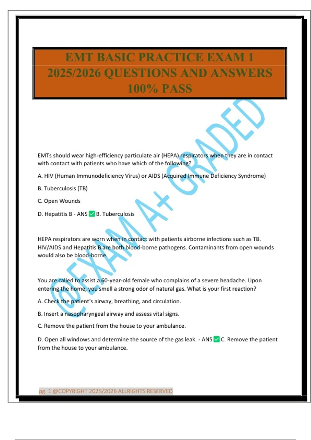 EMT Basic Practice Exam 1 Questions and Answers | Latest Version | 2025 ...