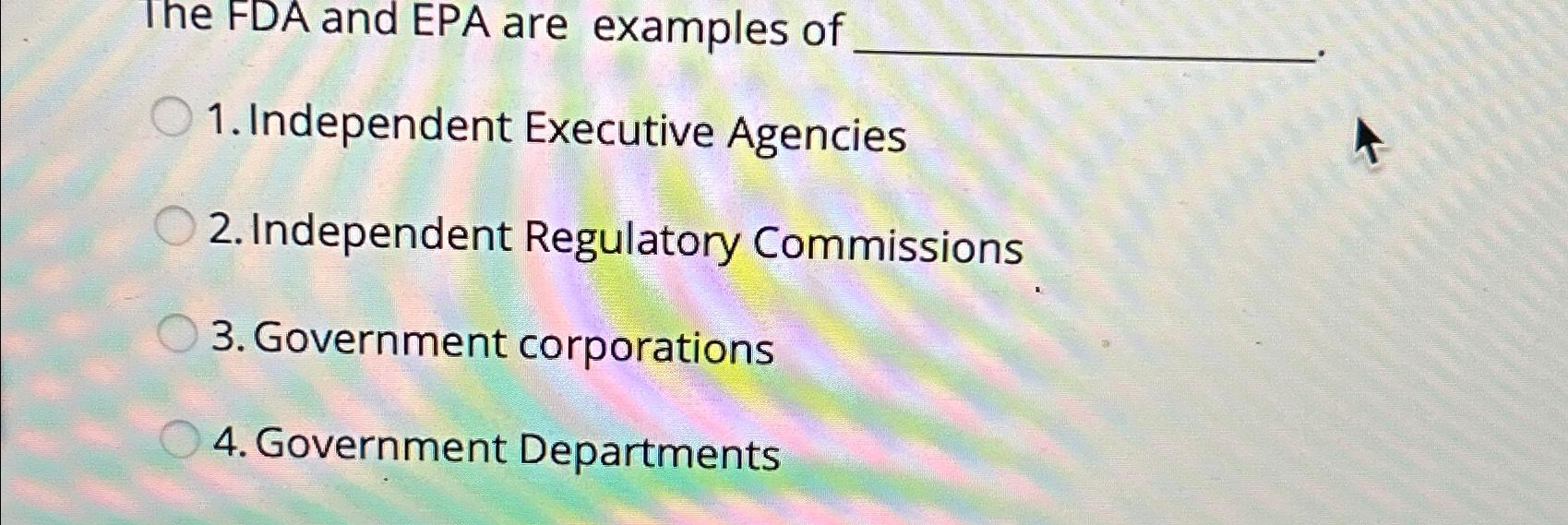 Solved The FDA and EPA are examples of1.Independent | Chegg.com