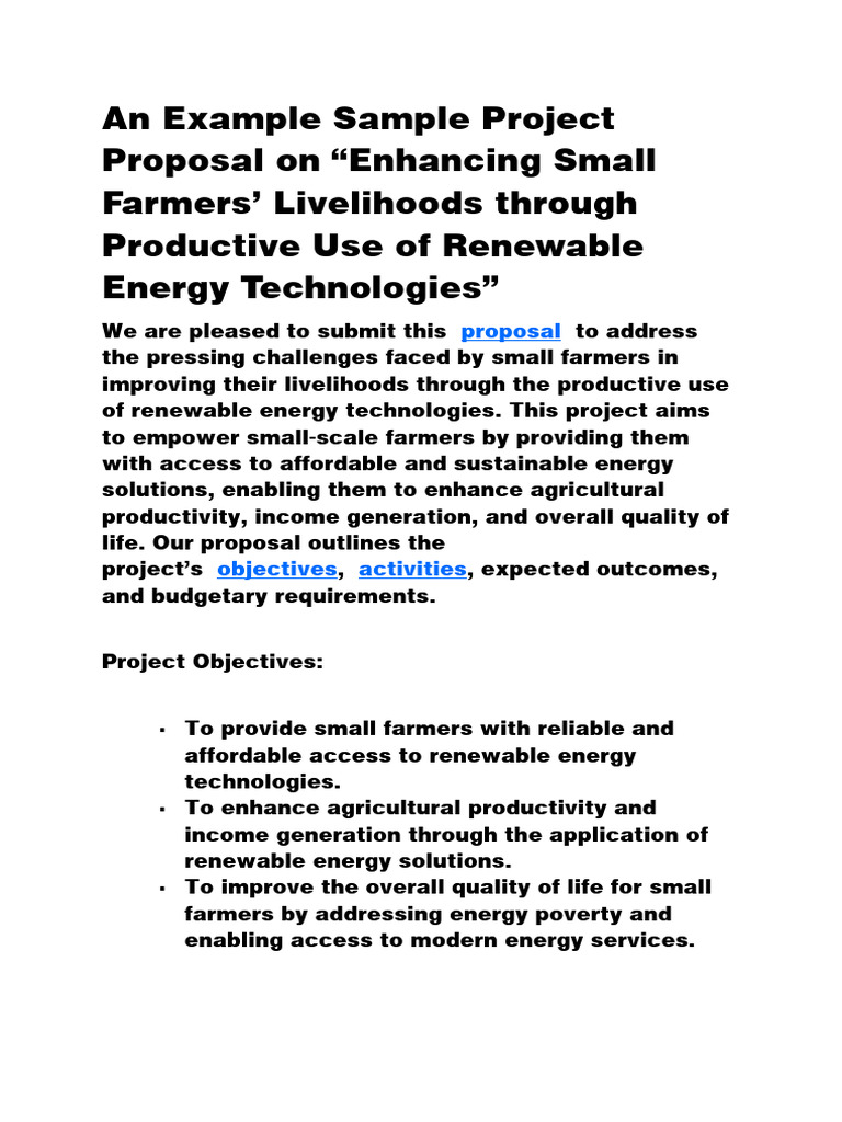 An Example Sample Project Proposal On | PDF | Renewable Energy | Energy ...