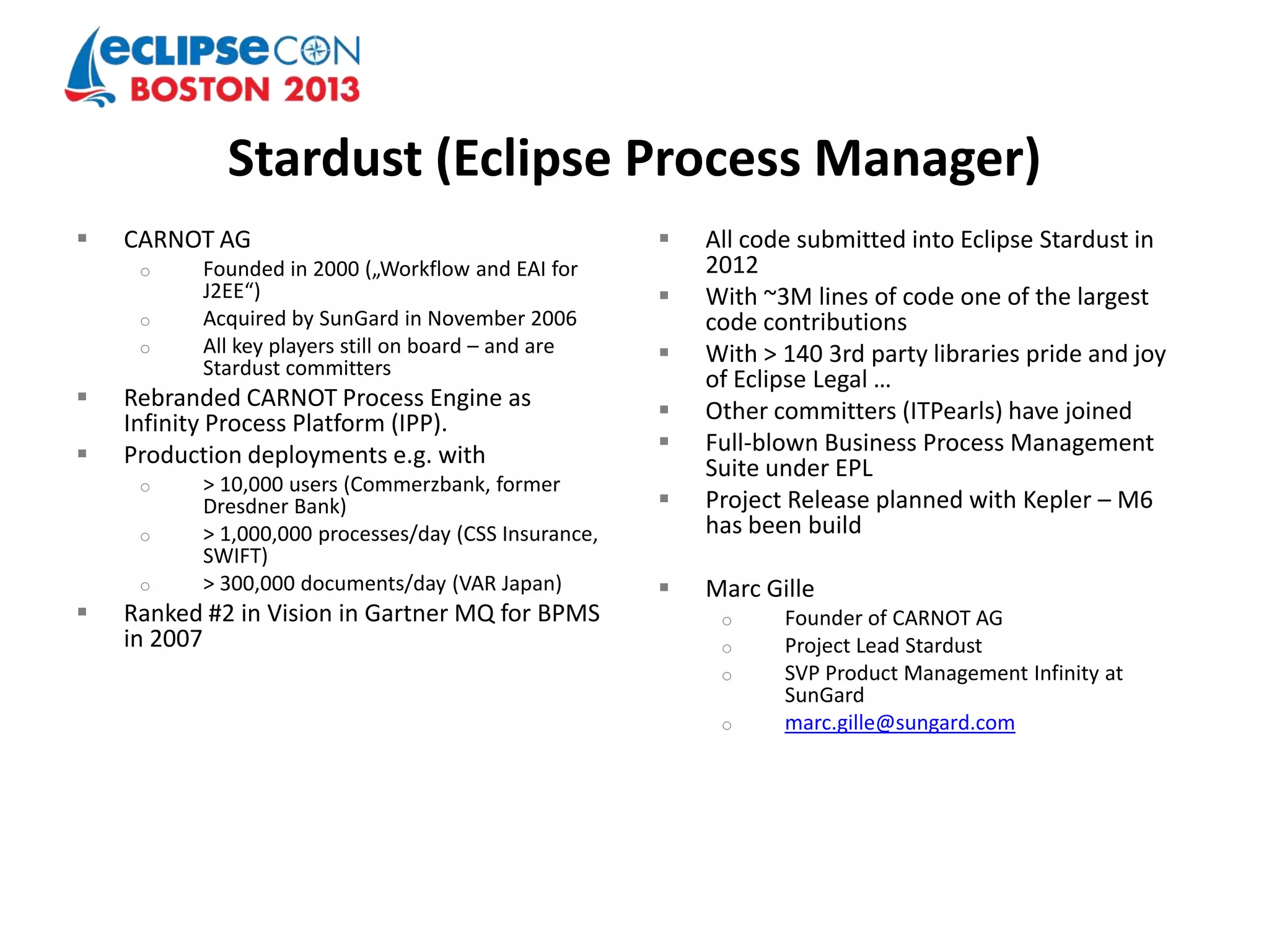 Stardust orion integration - orion soa symposium - eclipse con 2013 | PPTX