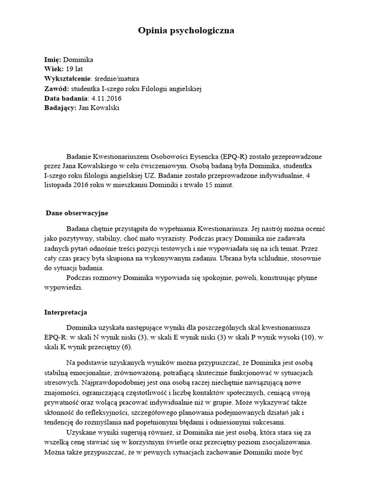 Charakterystyka Kwestionariusza Epq R em Eysenck Personality ...