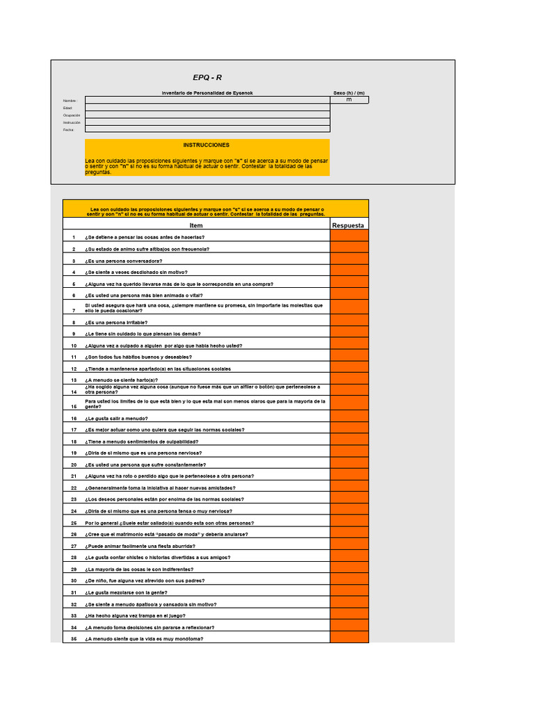 EPQ-R - Formato en Excel | PDF | Cuestionario