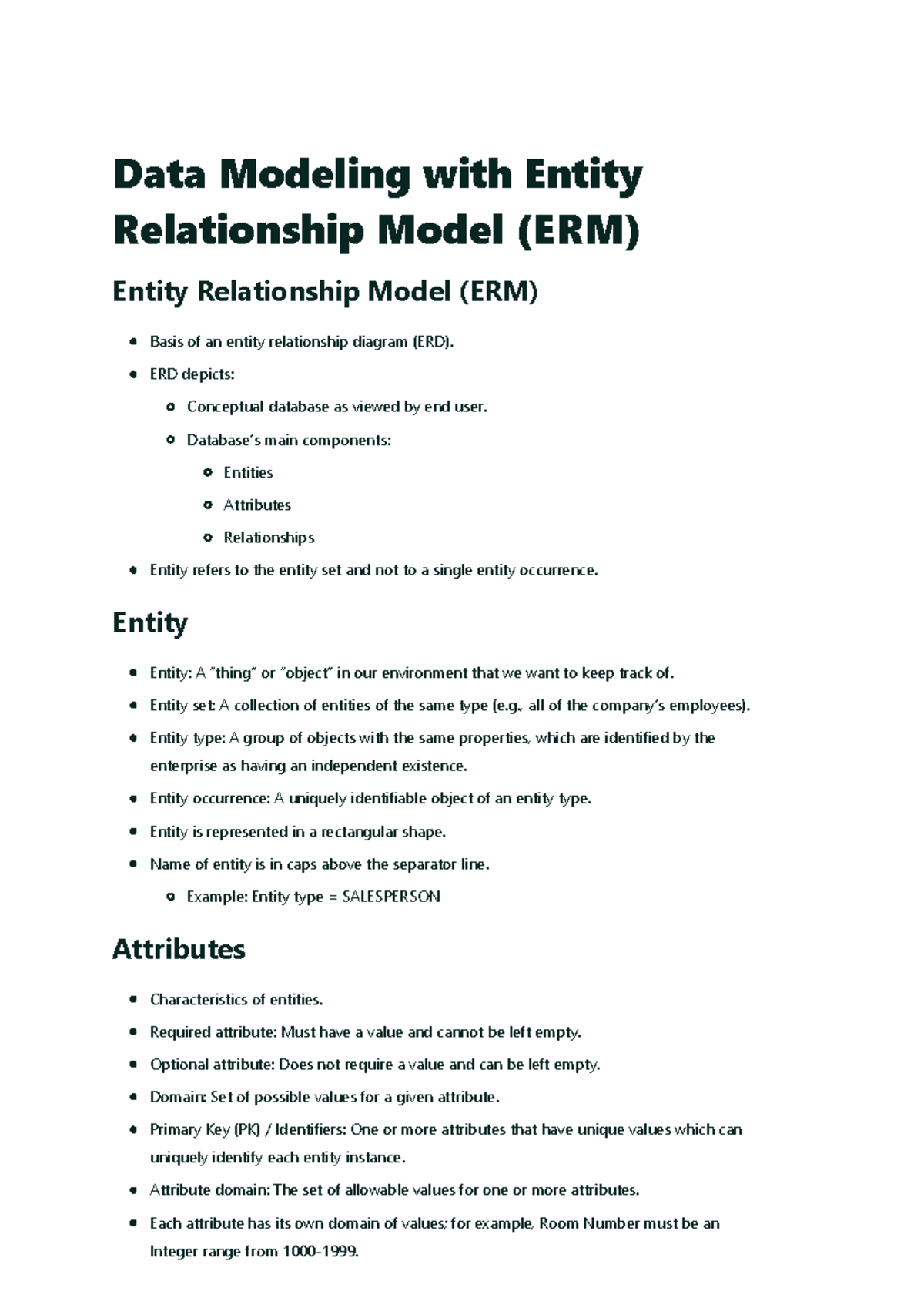 Entity Relationship Model (ERM) for Database Design | | Course Hero