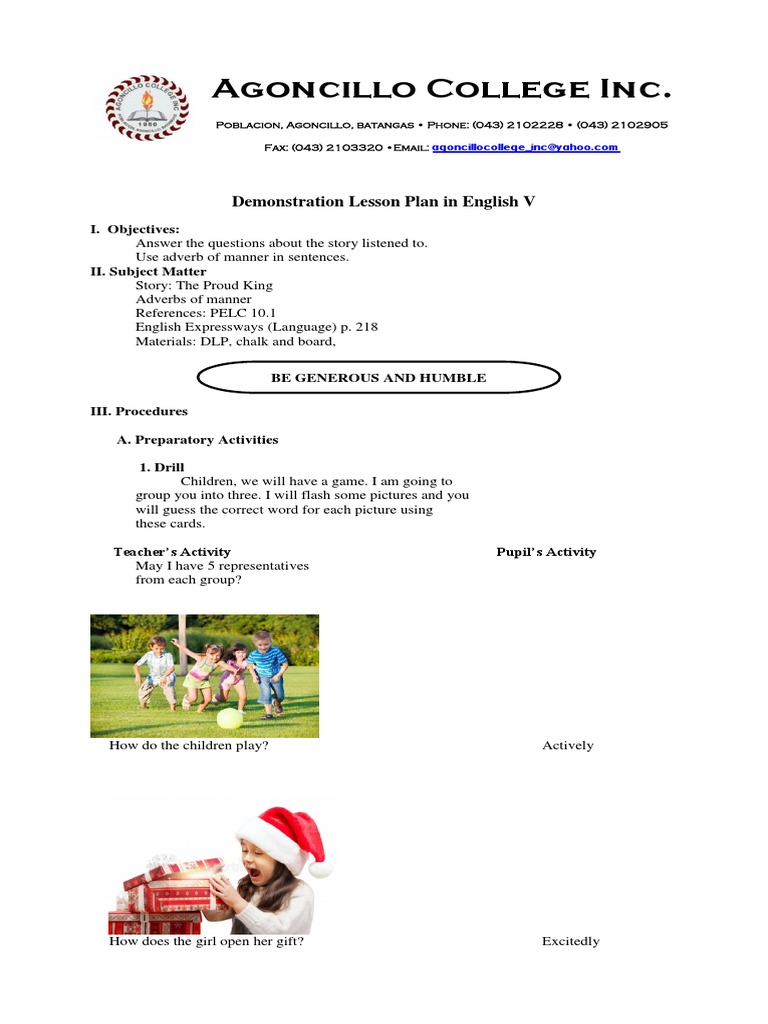 Demonstration Lesson Plan in English V 2019 | PDF | Adverb | Linguistics