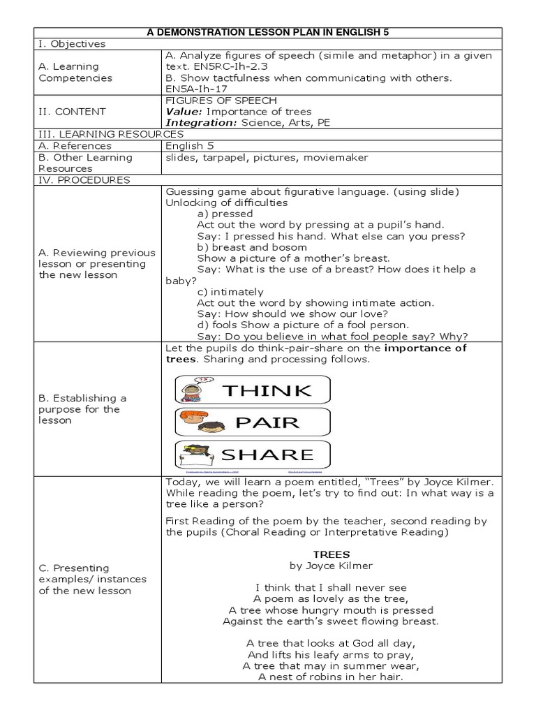 Sample Detailed Lesson Plan in English For Teaching Demonstration | PDF ...