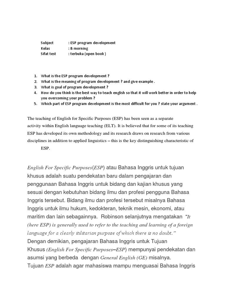 Soal Esp Program Development | PDF | Seni & Disiplin Bahasa