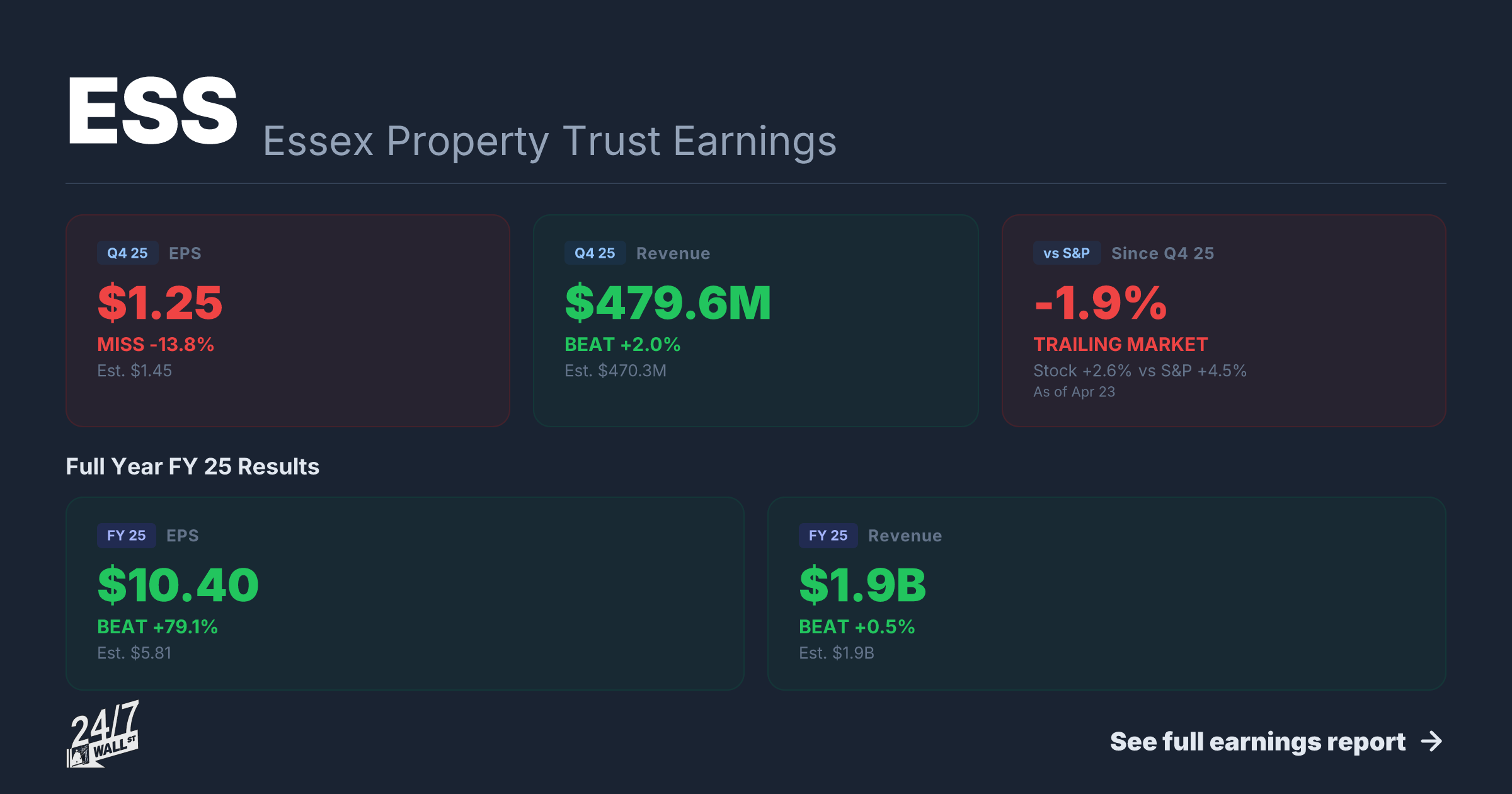 Essex Property Trust (ESS) Earnings Trends: EPS & Revenue History | 24/ ...