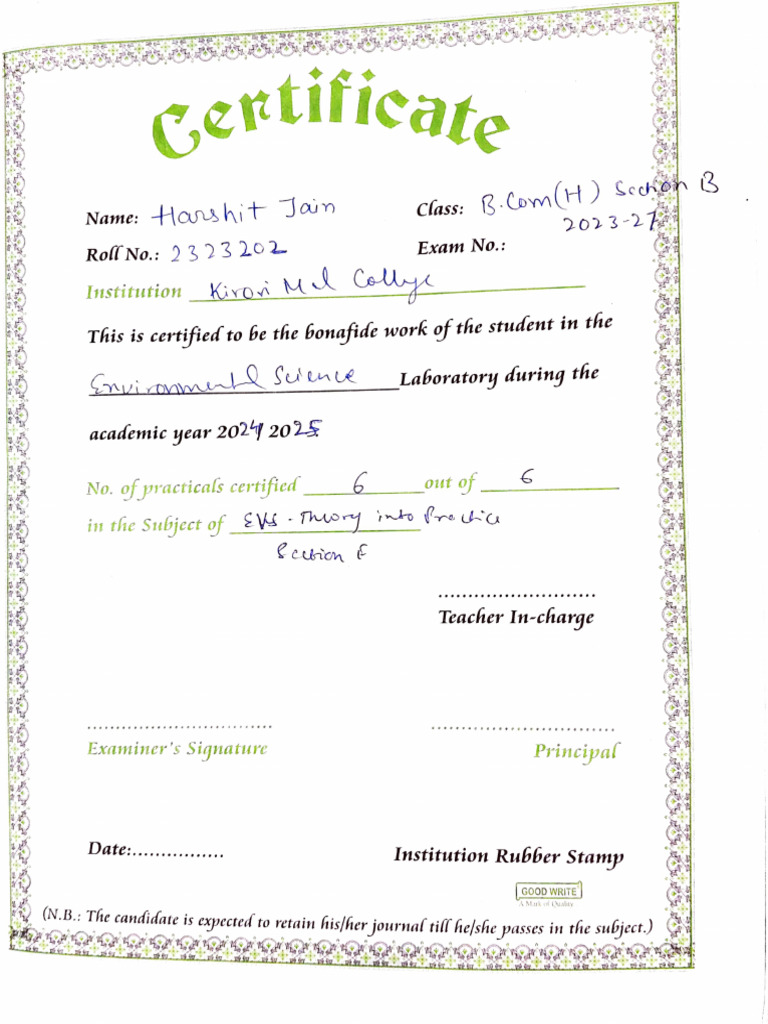 EVS Practical File for B COM Semester 2 | PDF