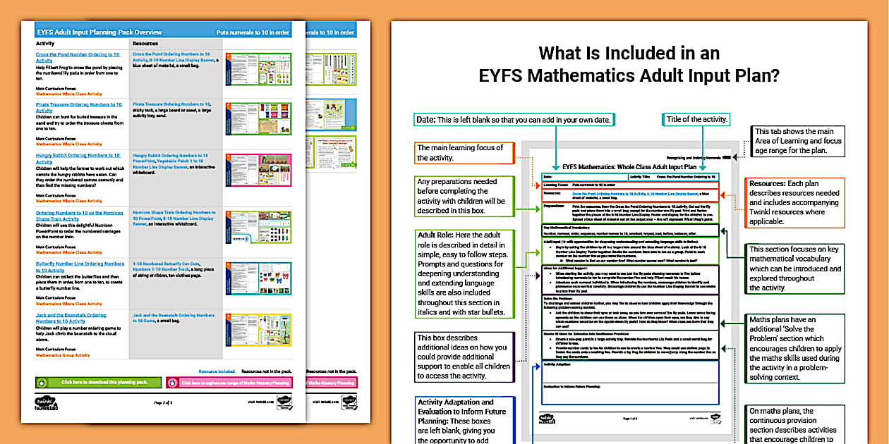 EYFS Maths Ordering Numbers to 10 Adult Input Plan - Twinkl