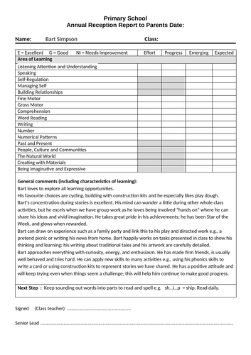 EYFS Report Template Examples New Curriculum | Teaching Resources