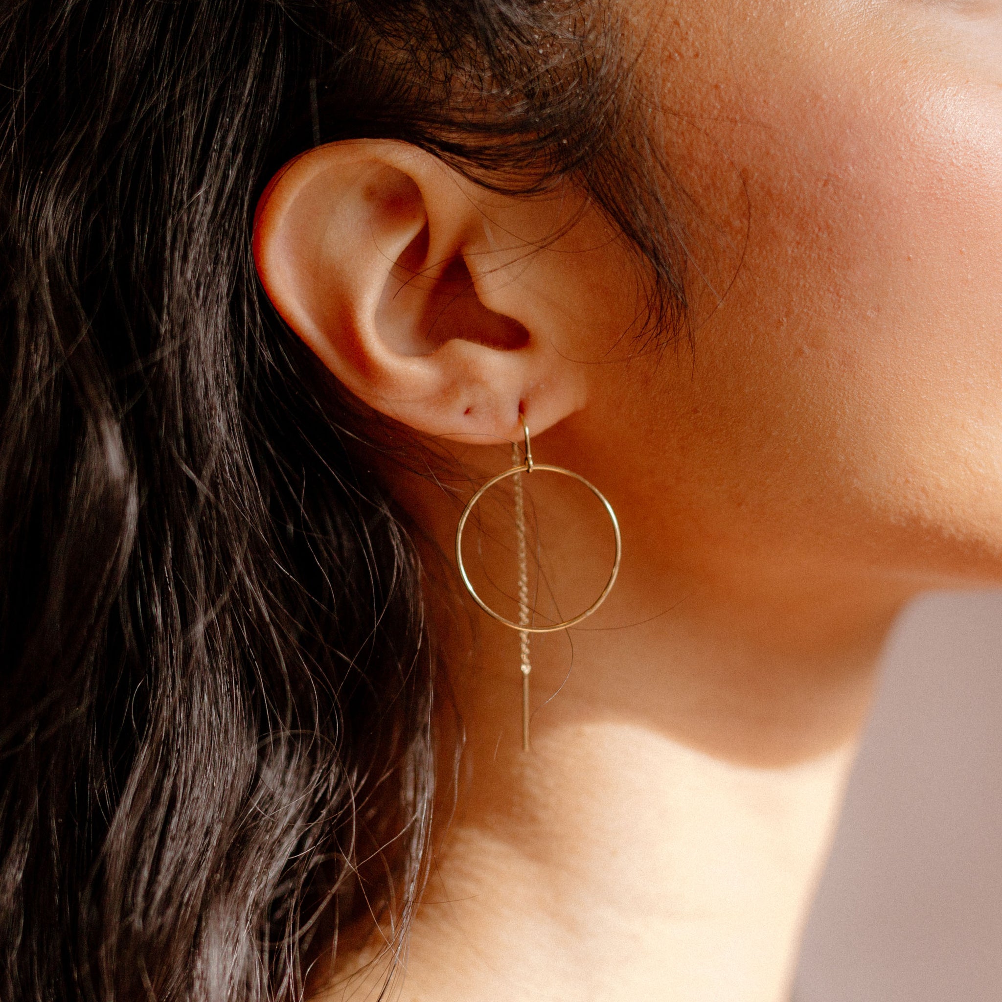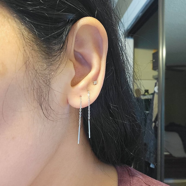 Thread Earrings, Pull Through Earring, Double Piercing Earring Chain ...