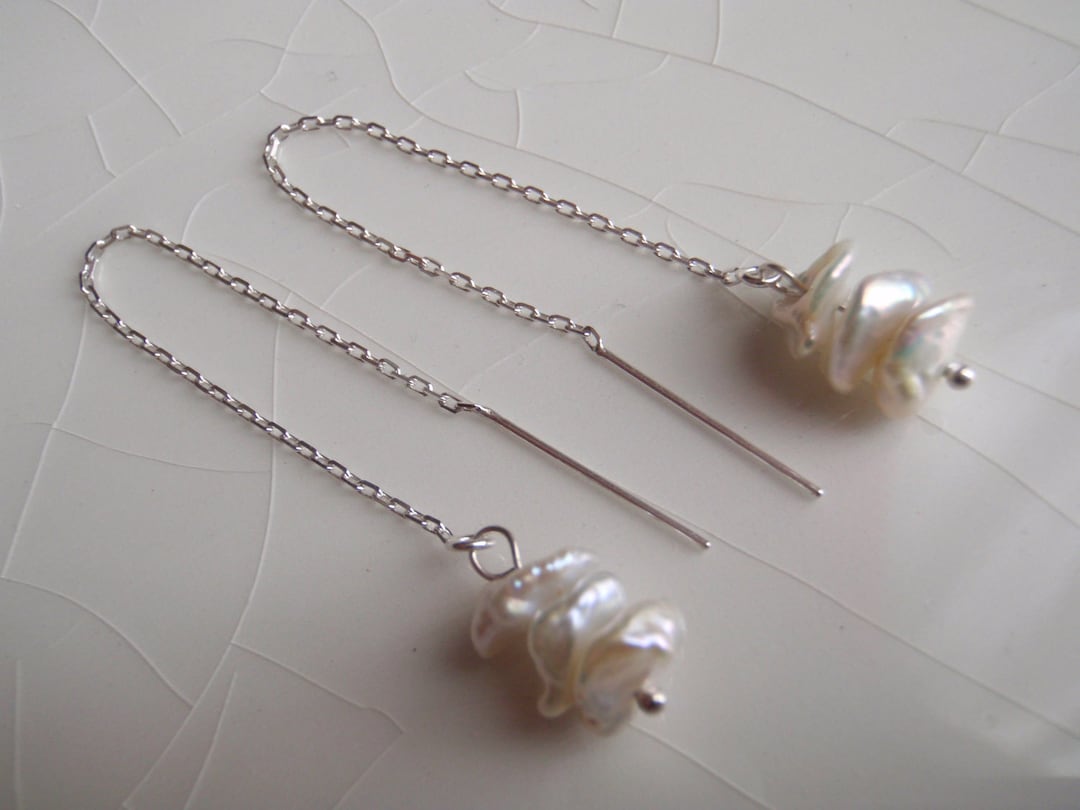 Ear Threader/ear Thread Earrings: Ivory/white Keishi Pearl - Etsy