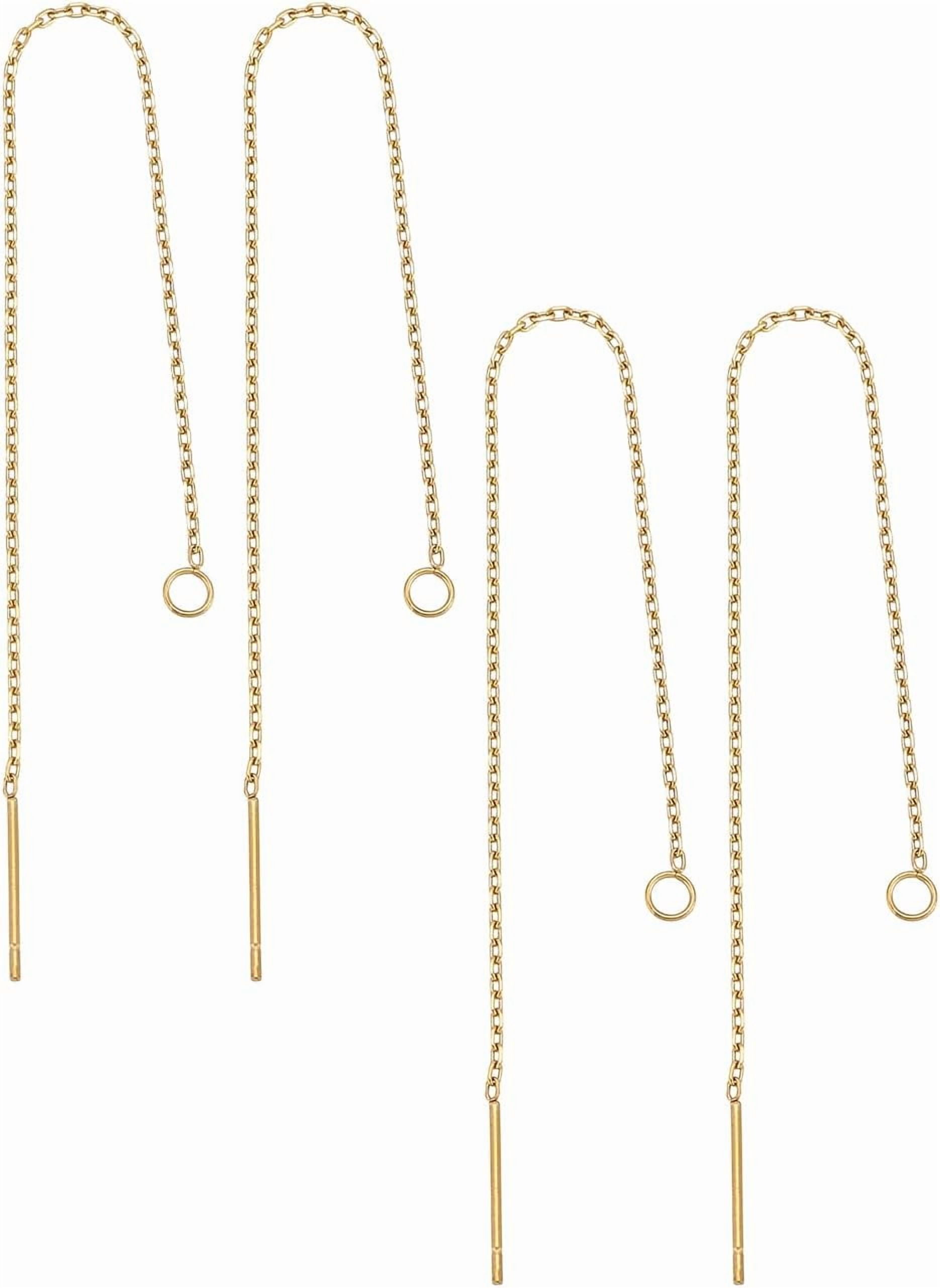2 Pairs Golden Ear Threads Cable Chains Ear Threads with Loops 304 ...