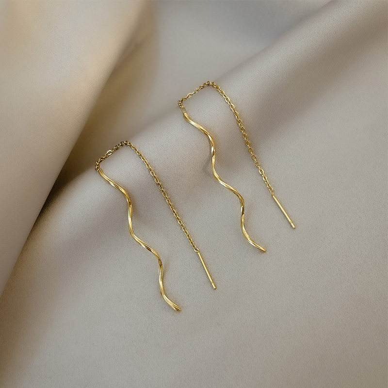 2025 new wavy tassel ear threader earrings: a slimming and elegant long ...