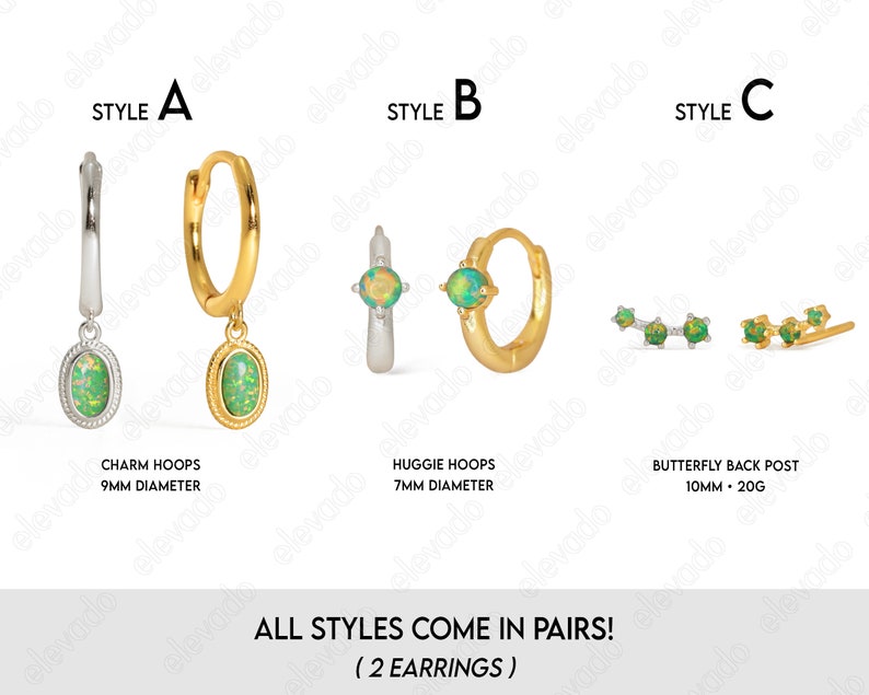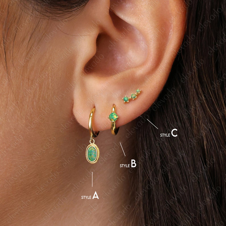 Gold Opal Hoop Earring Stack Set: Sterling Silver Minimalist Jewelry ...