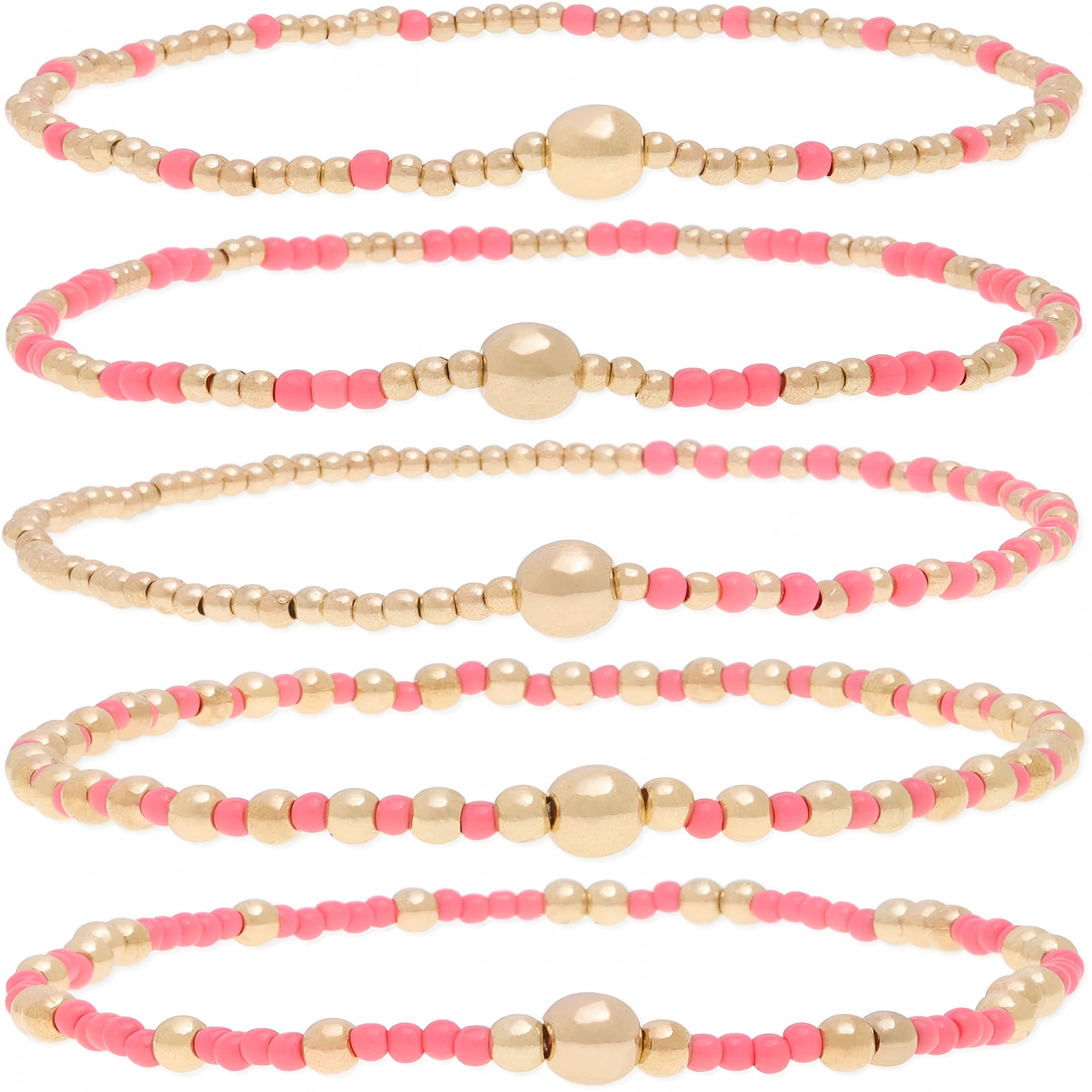 DESIGNICE Gold Beaded Stack Bracelets Set for Women,5Pcs Boho Handmade ...