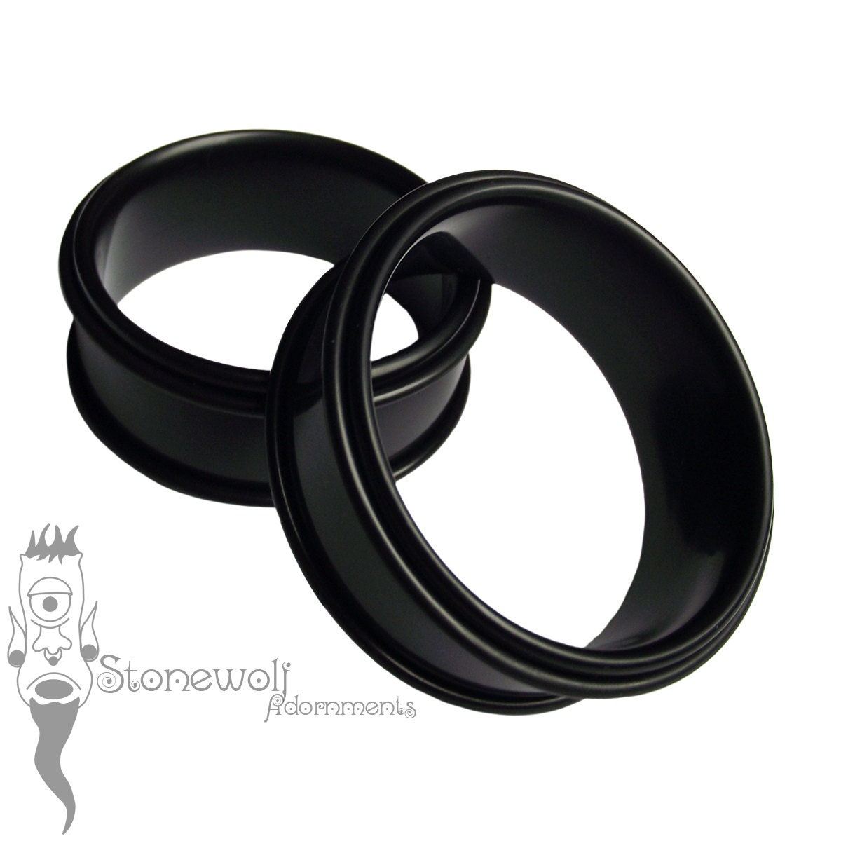 00 Gauge Black Double Flared Earlet Internally Threaded - Kingpin Tattoo