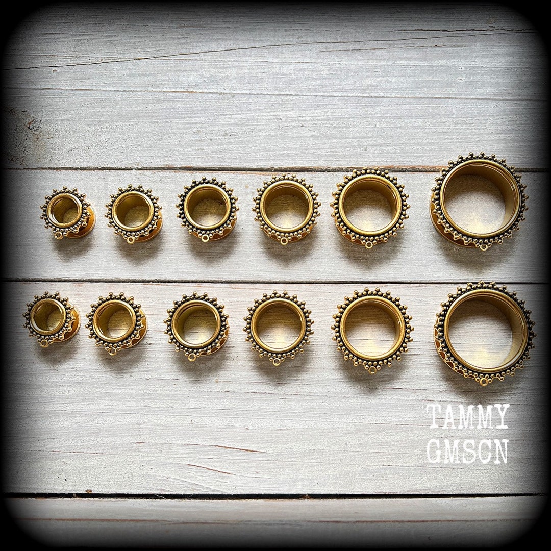 PAIR Antique Gold IP Tribal Lace Design Tunnels Plugs Earlet Gauges ...